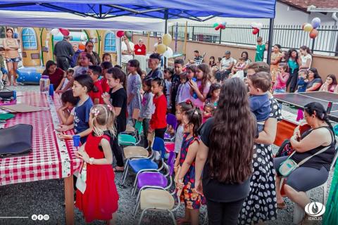 Para as crianças, foram montadas atrações especiais: brinquedos, cama elástica, contações de histórias bíblicas, lanches, brincadeiras e brindes — proporcionando um dia diferenciado e festivo para os pequenos.